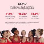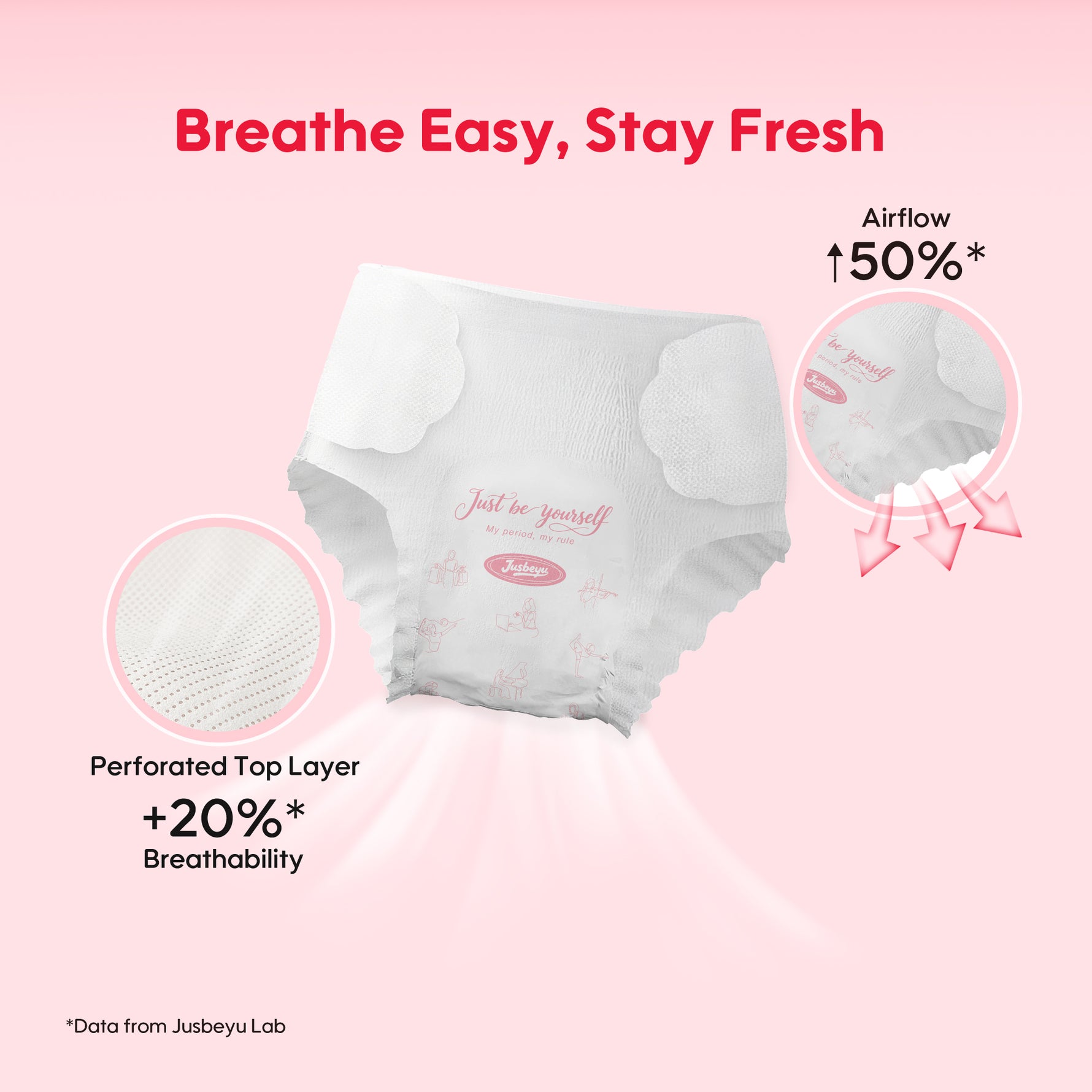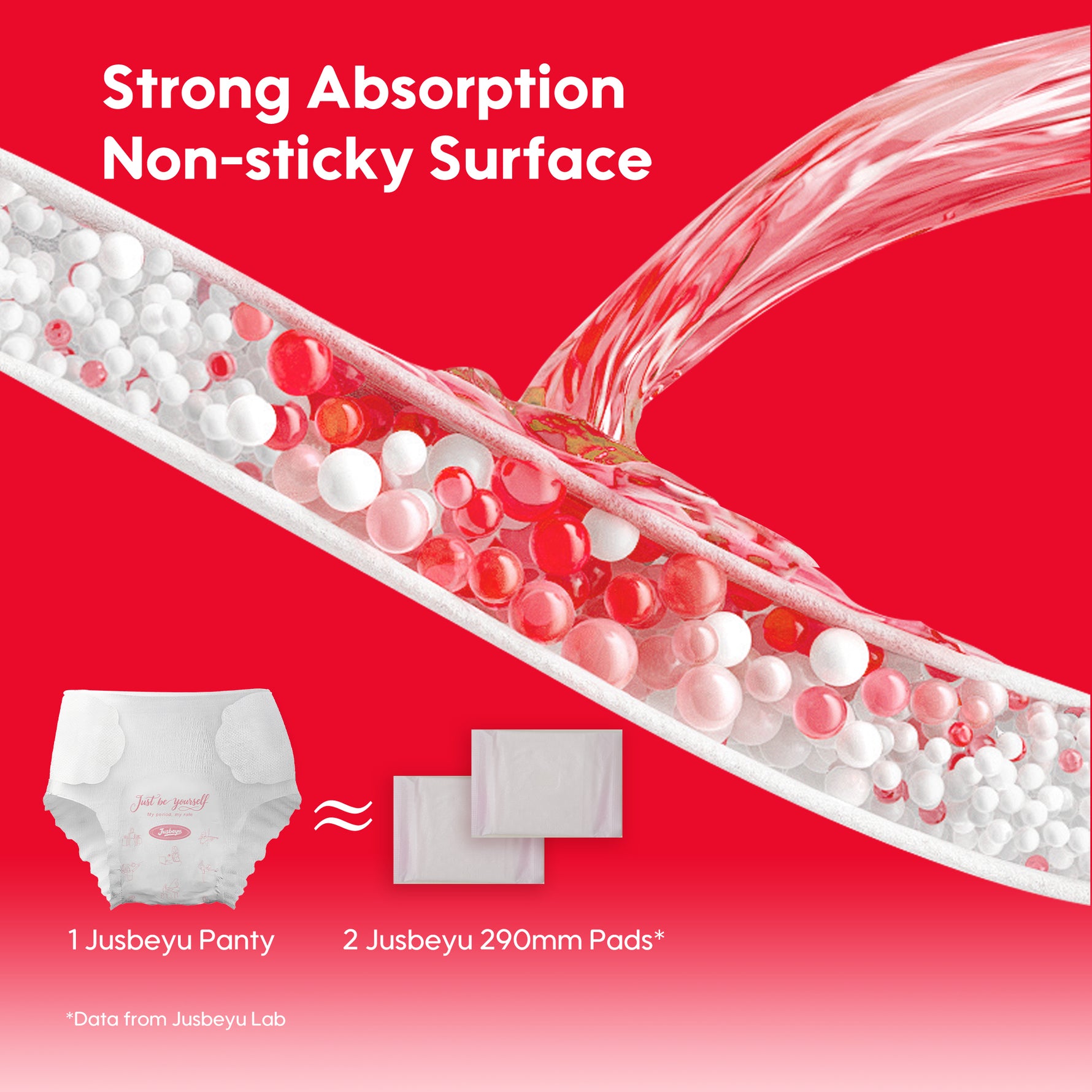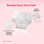 The period panties feature a double-layered 3D core that locks in fluid, with an absorbency up to 3 times that of a regular overnight pad. They effectively prevent side and back leaks, making them suitable for heavy-flow nights.